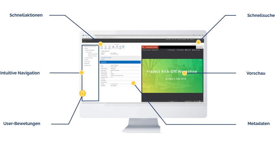 Sie können Device-Übergreifend arbeiten. Dokumente über Meta-Descriptions abrufen oder über die integrierte Volltextsuche wiederfinden. Je nach Berechtigung sind Dokumente unternehmensweit abrufbar.